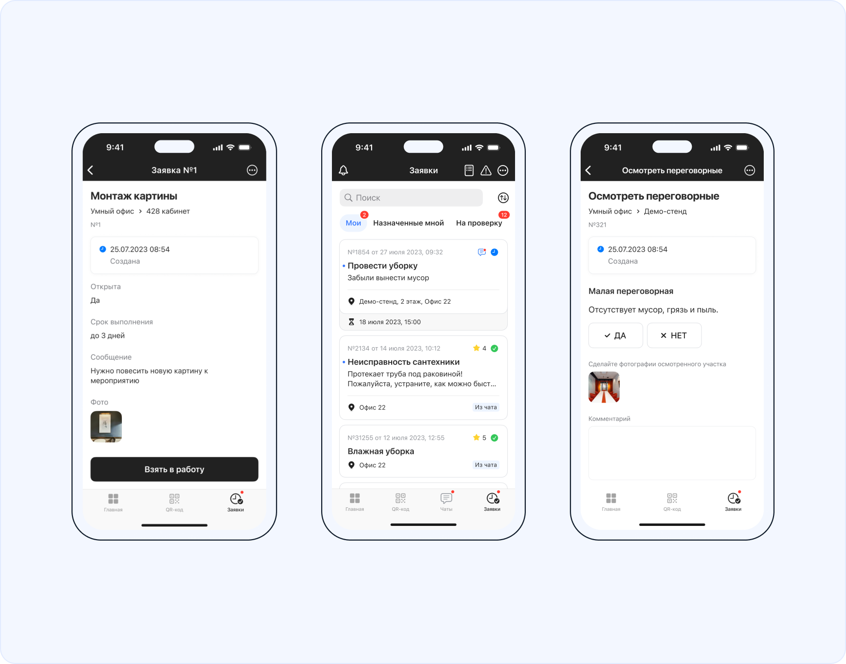 Контроль за состоянием помещений, взаимодействие с сотрудниками и решение внезапных проблем требует оперативности. Мобильное приложение позволяет управлять задачами из любой точки вашего объекта, не привязываясь к рабочему месту.