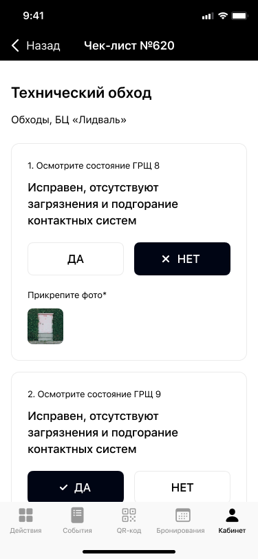 Во время обхода исполнителю нужно заполнить заранее настроенный чек-лист. Что-то забыть или не внести не получится — приложение автоматически контролирует заполнение полей, прикрепление фотографий и геолокацию.