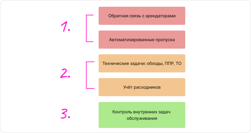 Управляющая бизнес-центром «Лидваль», Оксана Тыртычна, составила список потребностей для автоматизации и выделила проблемную зону, которую нужно было закрыть в первую очередь.