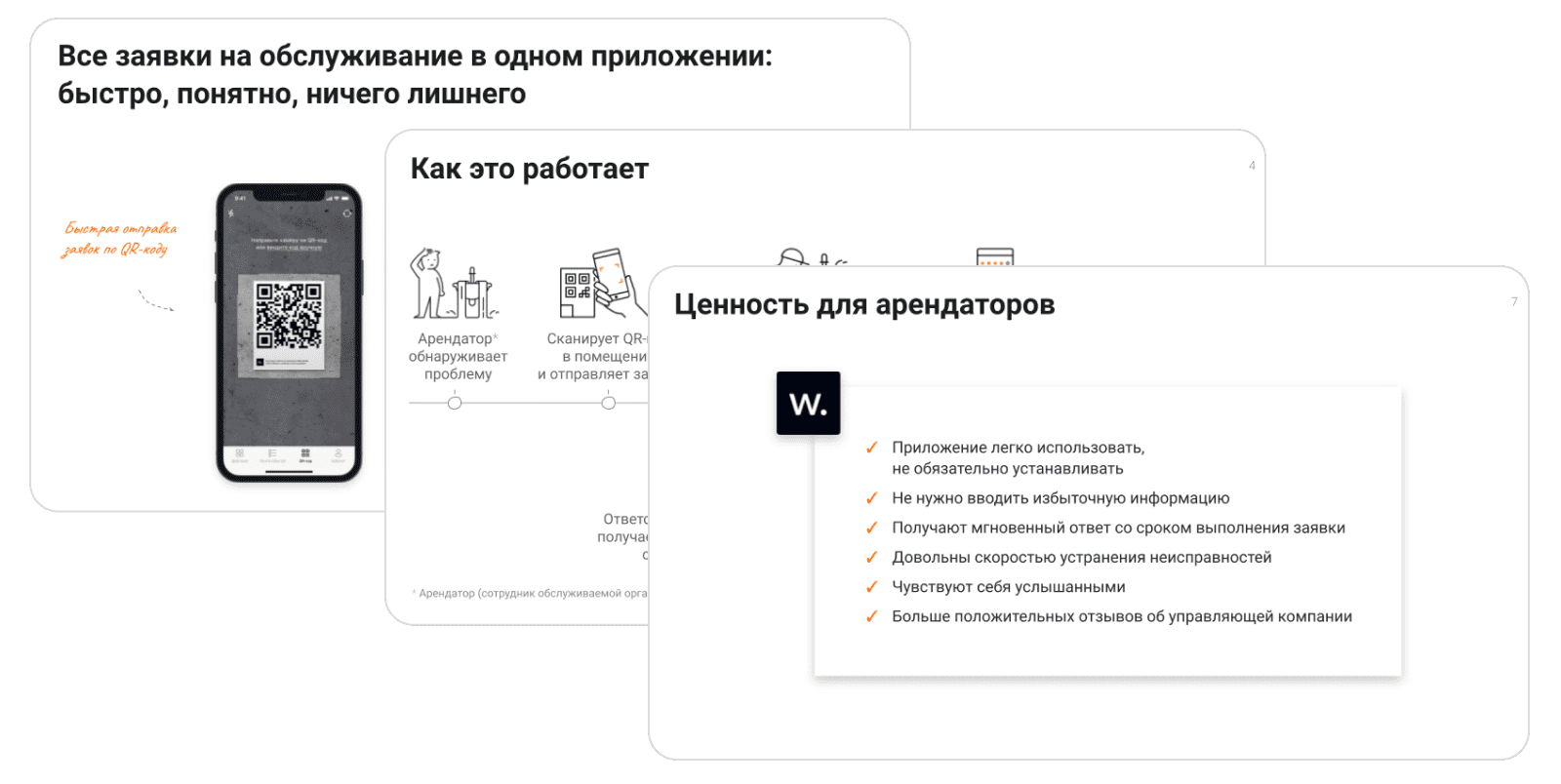 Сейчас, чтобы обратиться к управляющим, арендатору нужно отсканировать QR-код, выбрать нужную заявку и описать проблему.
