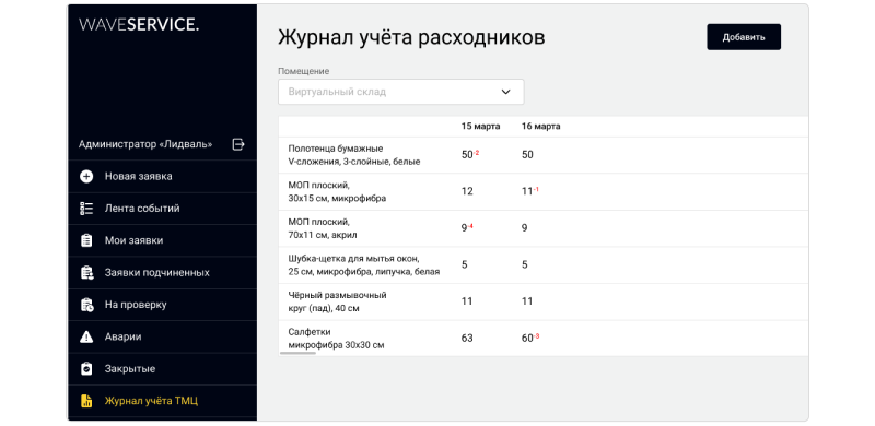 Учёт расходников в Wave Service