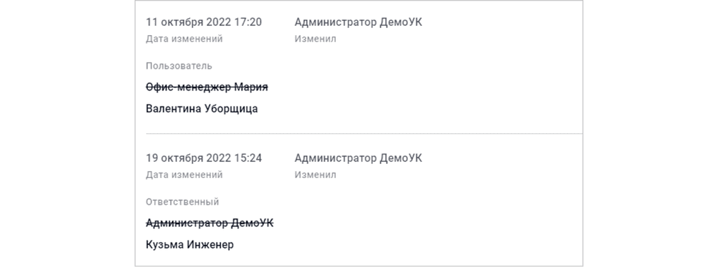 Также помимо ответственных можно отметить пользователей. Как правило, это разные люди. Все изменения можно отследить в истории.