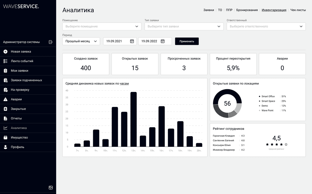 Аналитика по инвентаризациям в Wave Service