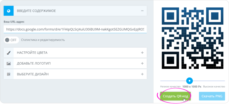 Кнопка создания QR-кода