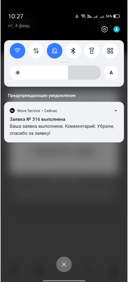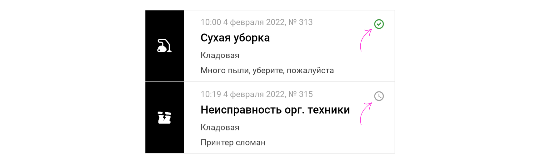 Кроме того, вы получите push-уведомления об изменении статуса: когда вашу заявку возьмут в работу и когда исполнитель выполнит заявку.