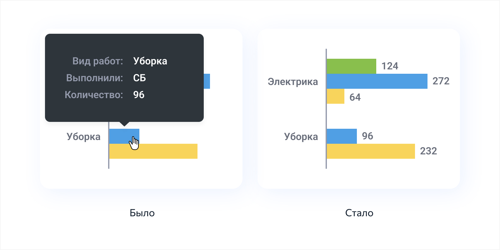 Доработки коснулись и дизайна. В типовом отчёте у нас настроены всплывающие подсказки. При наведении курсором на столбец раскрывалась дополнительная информация.