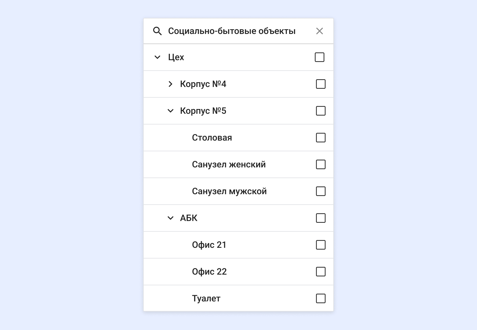 - Внедрили удобную иерархию помещений для управления объектами. Подробная информация о помещении доступна всем сотрудникам в карточке объекта, как в веб-версии, так и в мобильном приложении по QR-коду в помещении.
