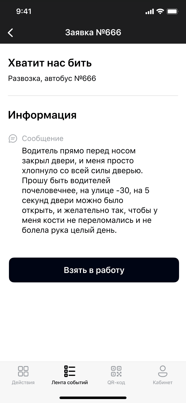 Жалоба сотрудника на неисправность дверей автобуса