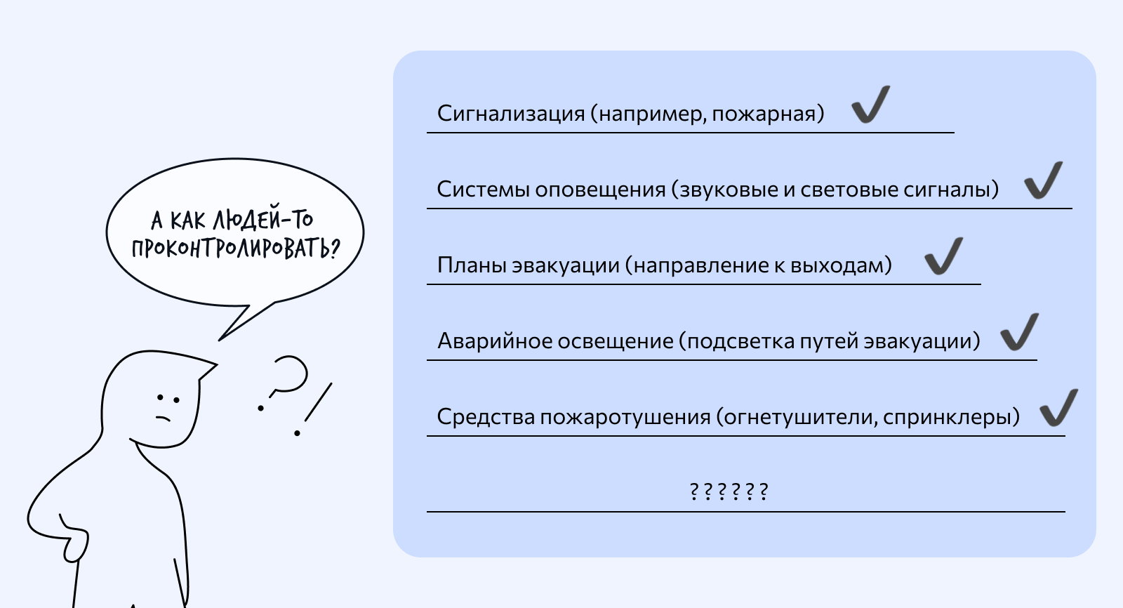 Современные системы безопасности не всегда включают возможности для контроля эвакуированных
