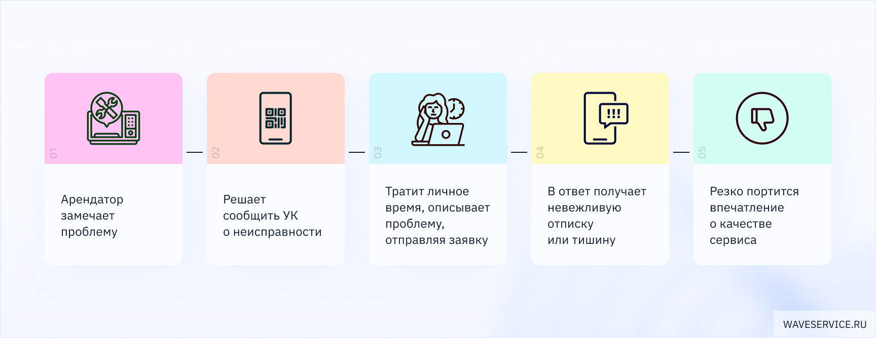 Быстрые и вежливые ответы — простой, но эффективный способ сделать коммуникацию комфортной и мотивировать пользователей обращаться к вам снова и снова. Так мы стараемся снять дополнительную нагрузку на исполнителей и помогаем управляющим компаниям поддерживать высокий уровень сервиса.В Wave Service это работает так:
