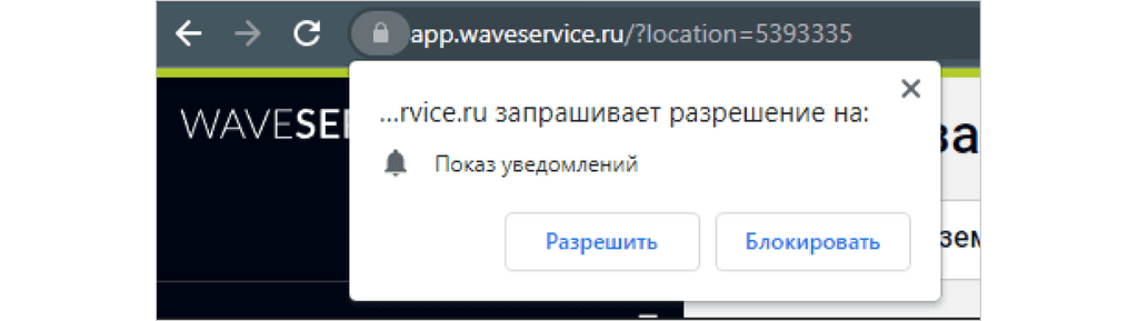 Когда вы впервые откроете веб-версию приложения Wave Service, браузер запросит разрешение на показ уведомлений.