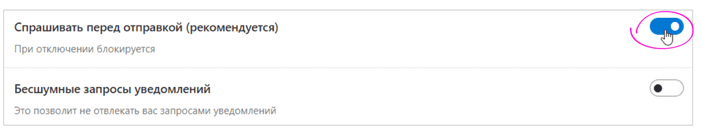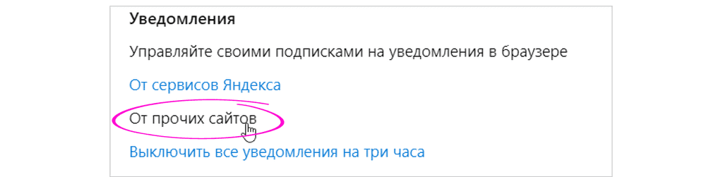 Функция «Показывать запросы на отправку» - В разделе «Уведомления» выберите пункт «От прочих сайтов».