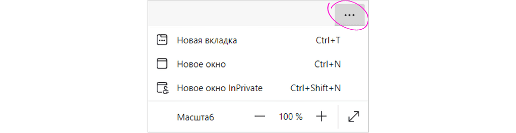 Доступ к настройкам через кнопку «Меню» в Microsoft Edge -