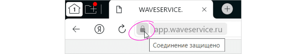 - В адресной строке браузера нажмите на замок рядом с адресом app.waveservice.ru.