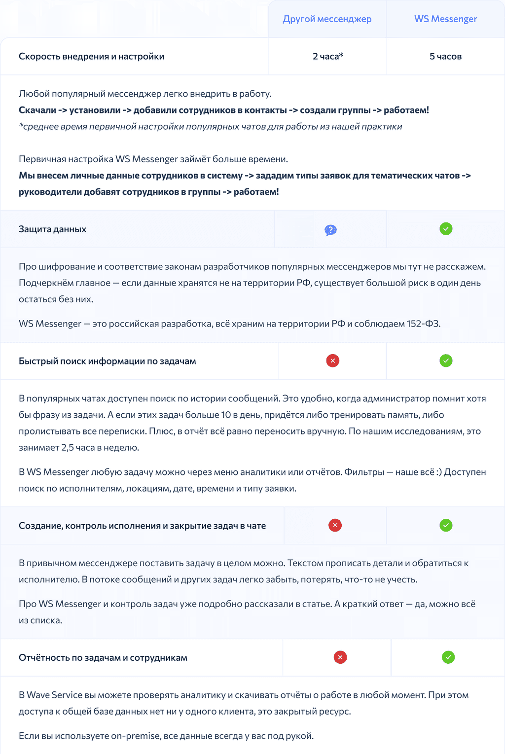 Сравнение WS Messenger с популярными мессенджерами в рабочих процессах