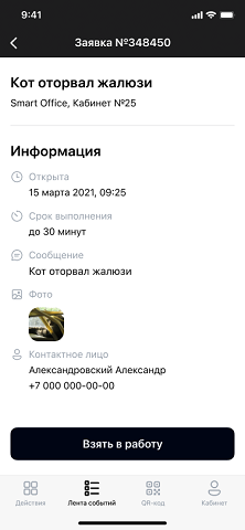 Например, в правилах управляющей компании прописано, что обходы должны проводиться по понедельникам с 9:30 утра. Исполнитель, который ранее в настройках системы был назначен ответственным за эту задачу, получает уведомление о новой заявке и приступает к обходу.