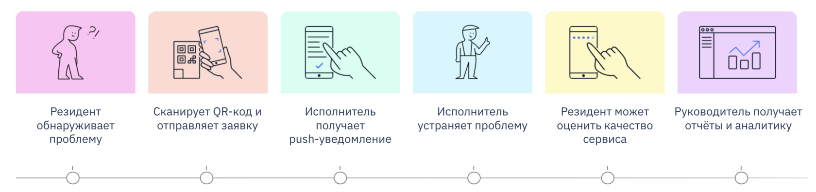 Резиденты отправляют заявки через QR-коды, а система мгновенно распределяет их между сотрудниками.