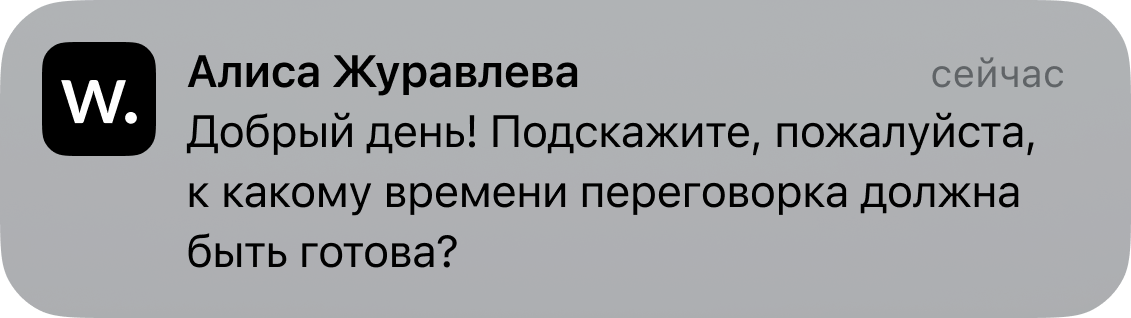 Например: «проверь оборудование», «вынести мусор», «передай информацию» — такие задания фиксируются в переписке и остаются под контролем.